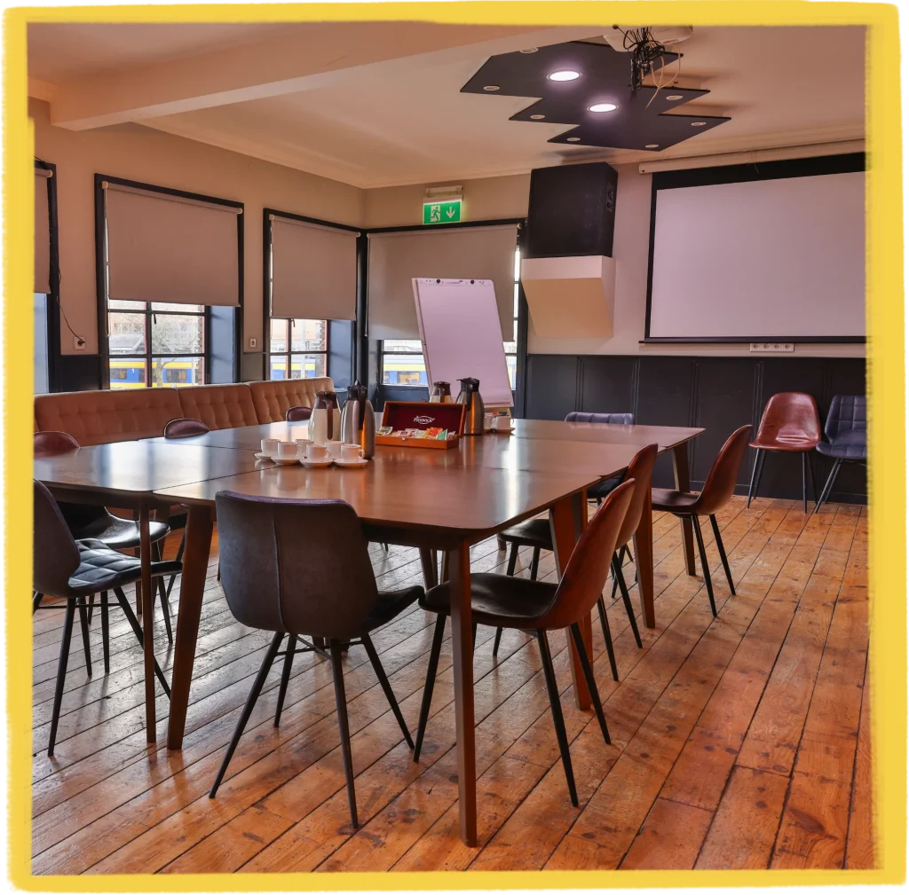 Daarnaast bieden wij een stijlvolle vergaderruimte, perfect voor zakelijke bijeenkomsten of private dining. Interesse? Neem contact met ons op voor de mogelijkheden!